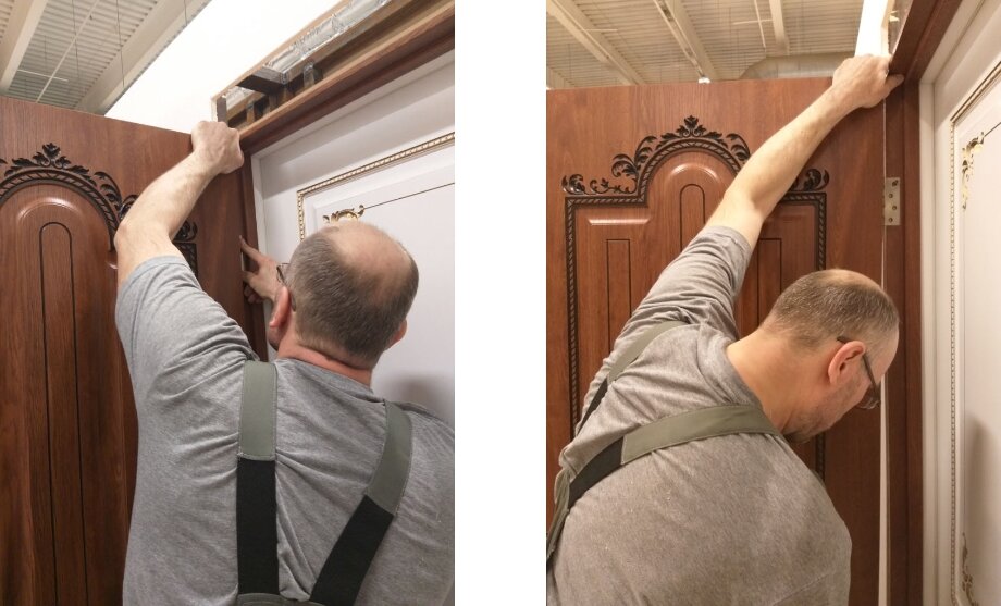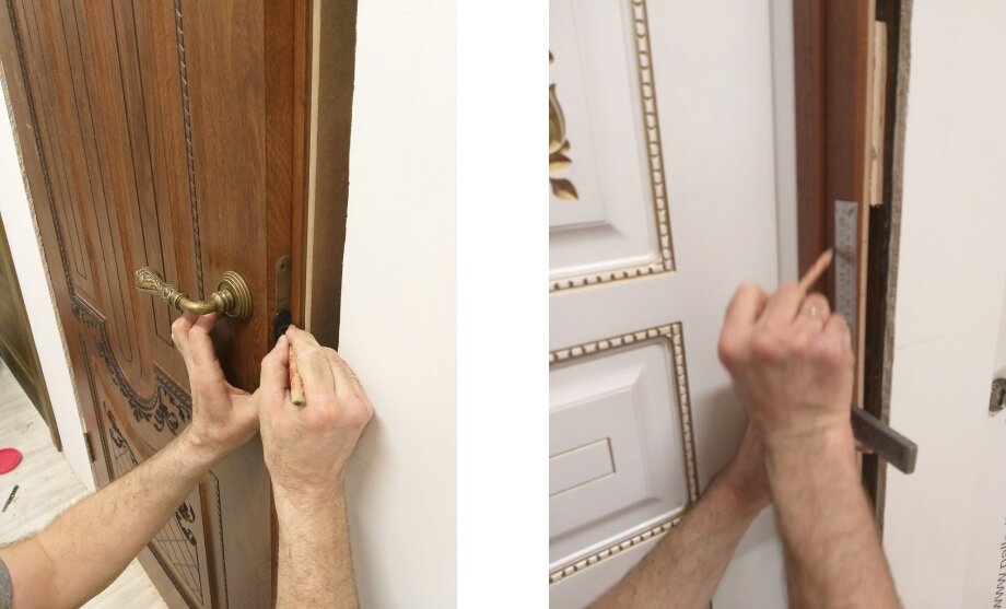 Обрежьте дверные упоры с обеих сторон дверного проема по высоте переходной молдинги. Затем отрежьте кусок перехода, чтобы он поместился между дверными косяками.