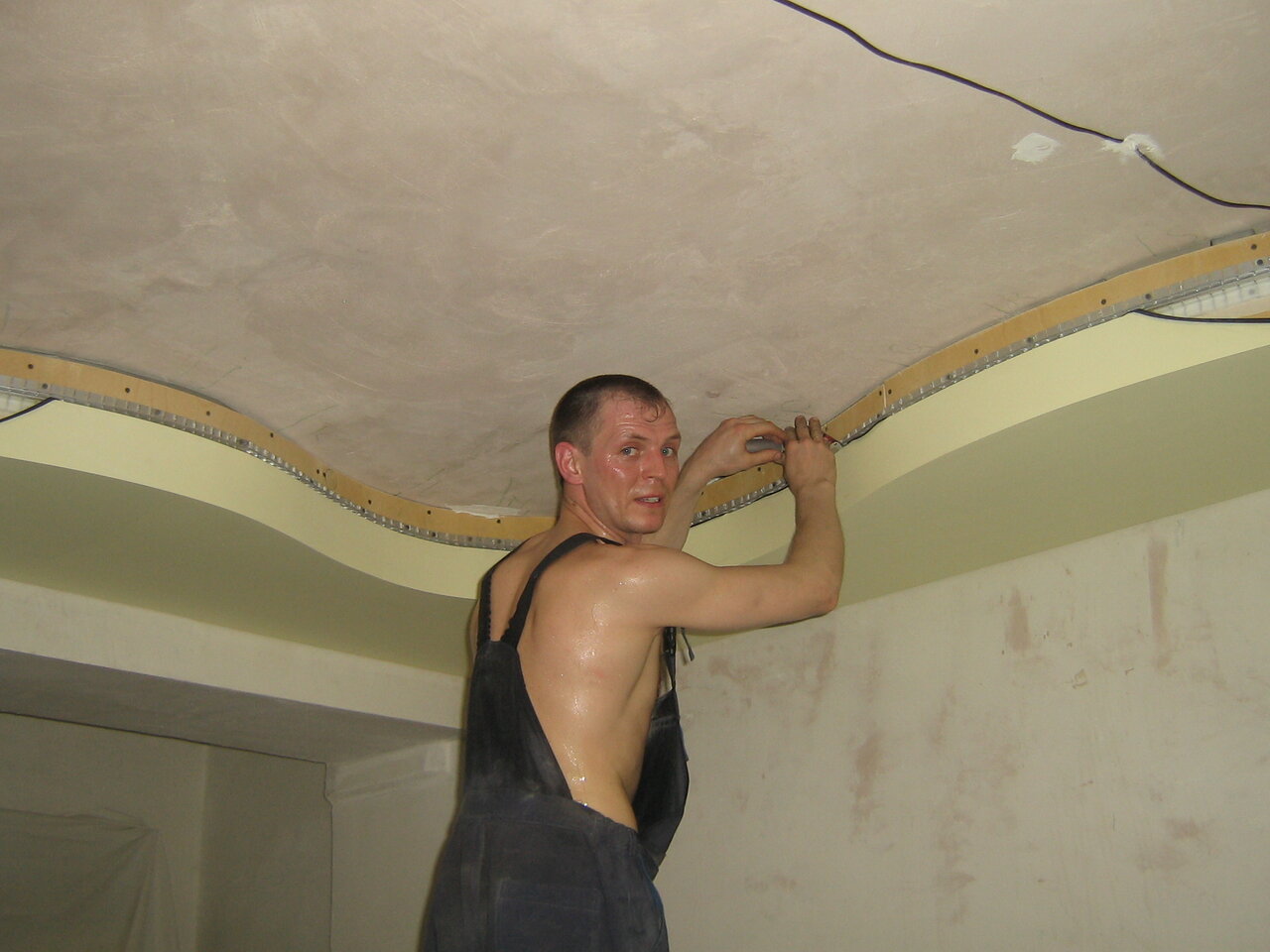 Они могут быть как примитивными одноуровневыми, так и сложными многоуровневыми, причем переходы от одного уровня к другому нередко являются плавными, с изогнутыми скругленными линиями, что придает потолку особую стильность и привлекательность.