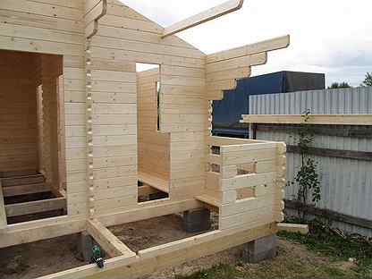 - столбы соединяют балками, служащими основанием для стен.