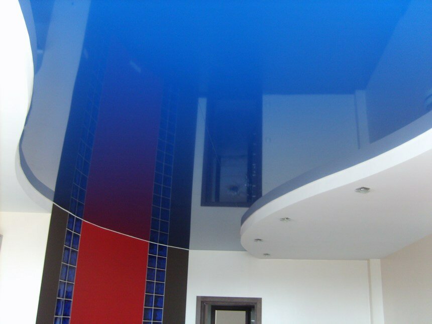 Преимущество натяжных потолков из поливинилхлоридной пленки в обилии красок (более 200 оттенков) и фактур (глянцевая, замшевая, матовая, сатиновая, металлик, зеркальная, полупрозрачная, с арт-печатью). Потолок из пленки ПВХ легко протереть от пыли влажной тканью. А в случае потопа натяжное полотно защитит мебель и весь интерьер от повреждений. Оно легко демонтируется и вновь устанавливается в прежнее состояние.