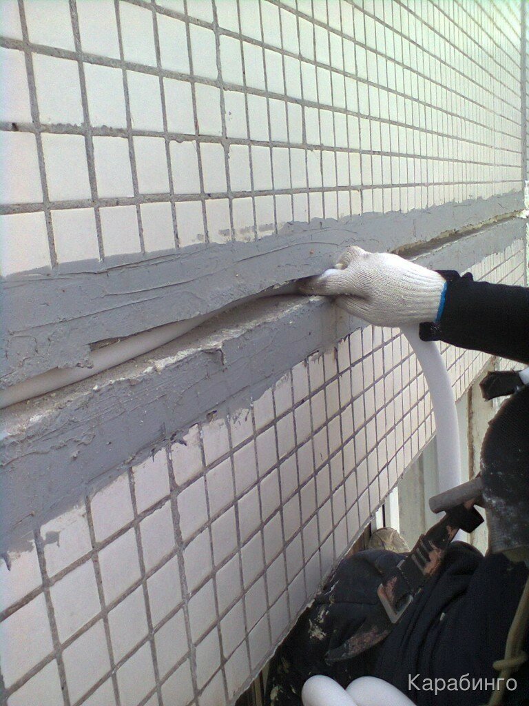 Он должен быть утоплен в стену на 1-3 мм. Главное не порвать «Вилатерм» при укладке, чтобы он не пропускал холод в панельный дом.