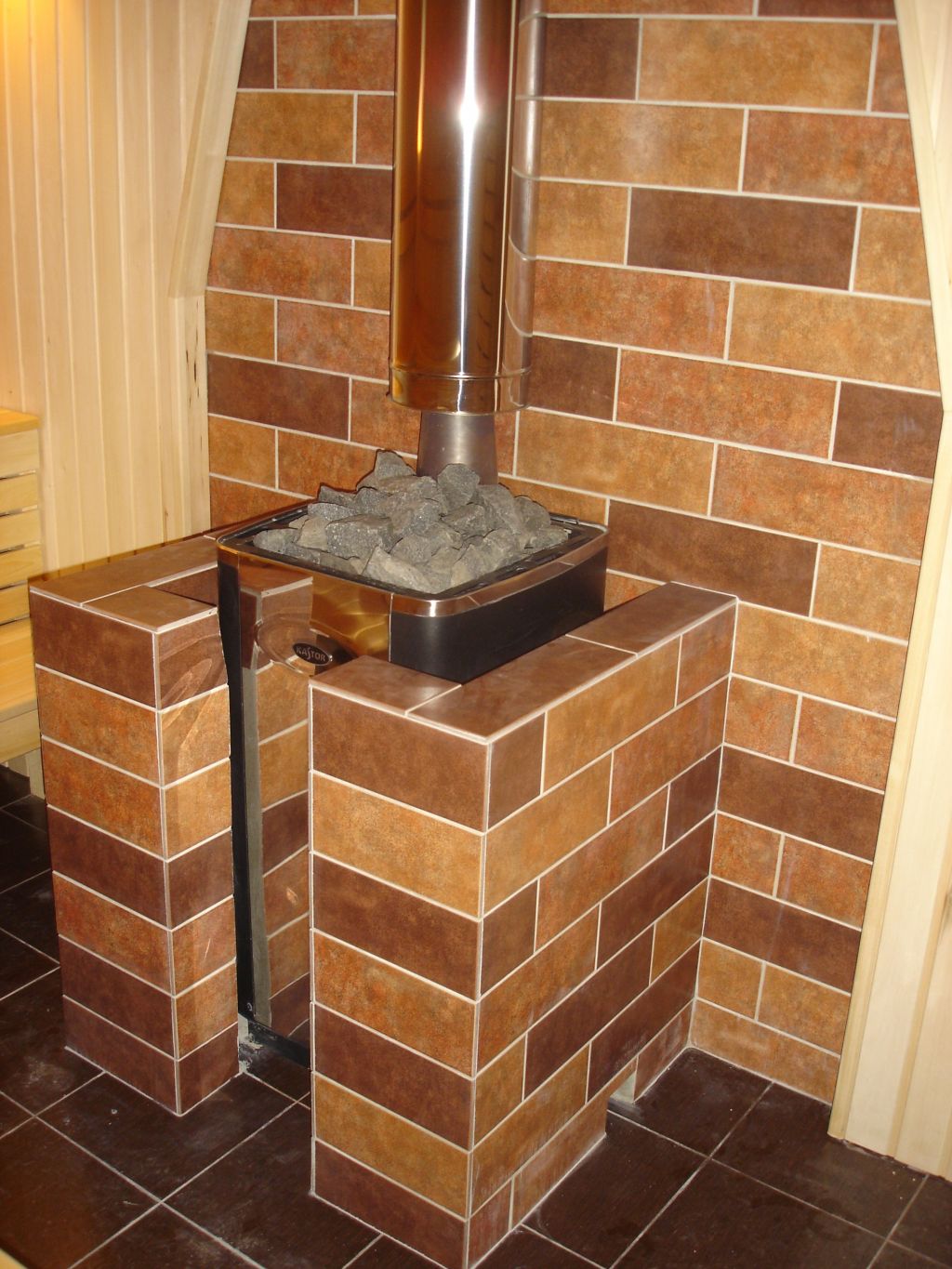 Жаропрочная мастика имеет огнестойкий состав, выдерживающий свыше 1100 градусов, также он устойчив к влаге, обладает бактерицидными свойствами, может применяться как облицовочный раствор. Бывают не только боковые, но и фронтальные экраны. Установка такой огнезащиты производится с помощью крепления к полу около печки, сам экран оборудован специальными ножками. Помимо стальных огнеупорных экранов применяются кирпичные в виде стенки, разделяющей корпус печки от возгораемой поверхности. Экран из кирпича устанавливается на расстоянии от 5 до 15 см от стенок печки, и на таком же расстоянии от возгораемой поверхности. Его высота может достигать потолка, а может быть равной высоте печки.