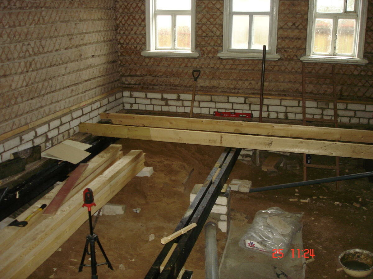 Отметки переносятся на стены при помощи отвеса. В том случае, если пол неровный, нужно нанести выравнивающий слой. Укладку делать можно будет не ранее, чем через сутки.