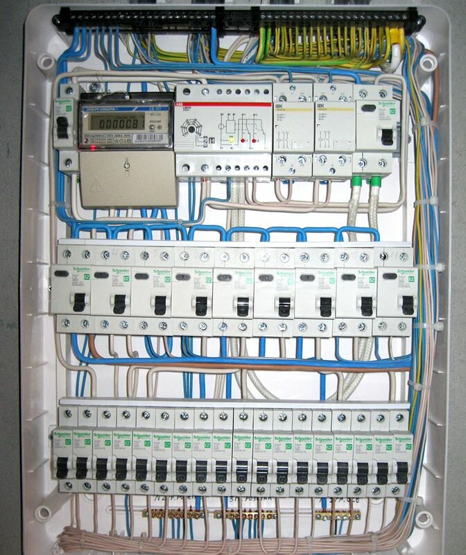 Она состоит из электроточек, связанных между собой и с силовой линией разного рода кабелями и проводами, защитных устройств и автоматических выключателей, контура заземления.