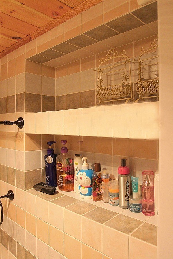 Внутренние или же утопленные полки более сложны в изготовлении. Для того чтобы оборудовать ванную комнату такой конструкцией, необходимо выполнить ряд действий: