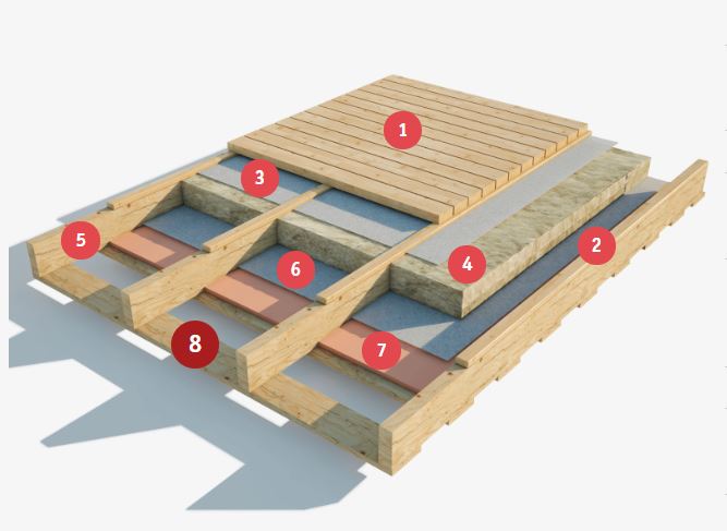 - Утепление деревянного перекрытия минеральной плитой, эковатой, керамзитом.