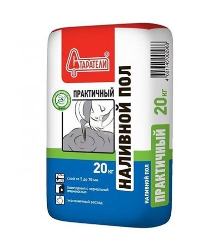 Наливной пол “Старатели” представлен в виде сухой смеси для выравнивания больших перепадов и нивелирования небольших отклонений на поверхности несущего основания. По сути, это сухой состав, состоящий из цемента, мелкозернистых наполнителей, армирующих волокон, полимерных и минеральных связующих.
