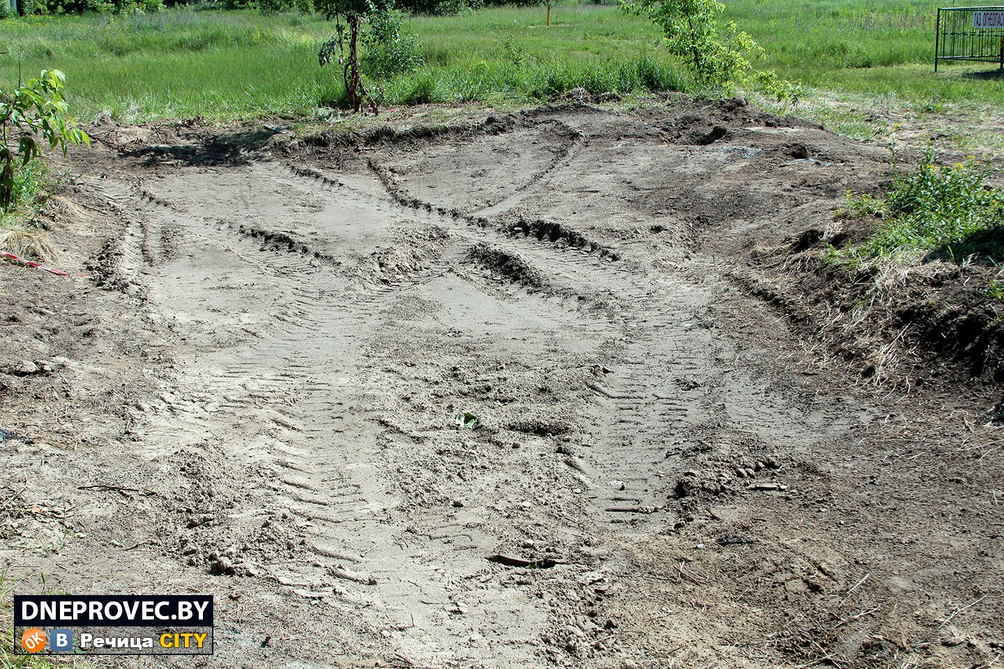 - Сделать выемку под дорогу глубиной 5 см и шириной 3 м.