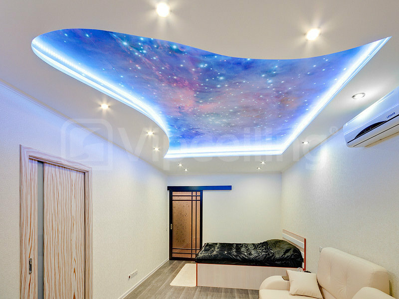 Если вы хотите себе именно такой потолок, то для этого вам будет необходимо обратиться в фирму, которая занимается установкой натяжных потолков.