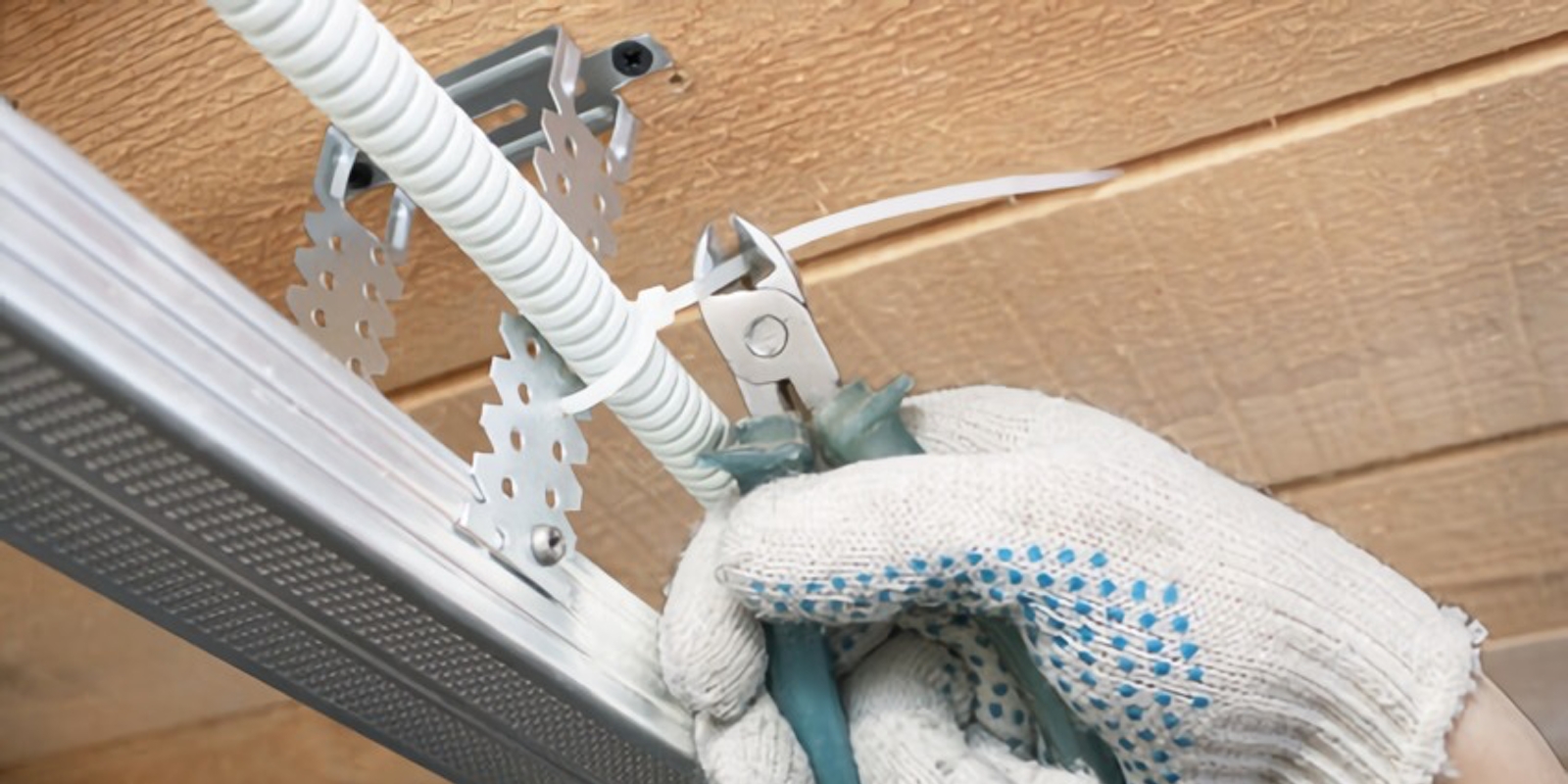 После подготовки материалов и инструментом можно полноценно начать проводку проводов. На размеченных стенах установите клипсы в нужных местах. Местоположение определяется по составленному чертежу. Между клипсами должно быть выдержано определенное расстояние – от тридцати до сорока сантиметров. Если у вас нет возможности достать клипсы, то в качестве замены подойдут пластиковые хомуты. В таком случае скорость работ значительно увеличиться, но есть и серьезный недостаток. Гофрированная труба может повредиться, если не использовать клипсы.