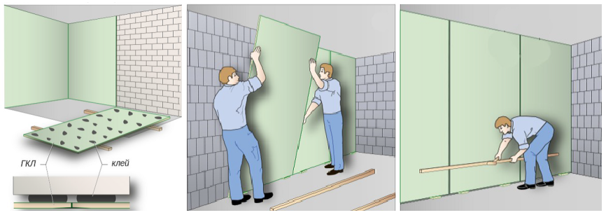 Обшивка стен гипсокартоном без каркаса-Энциклопедия