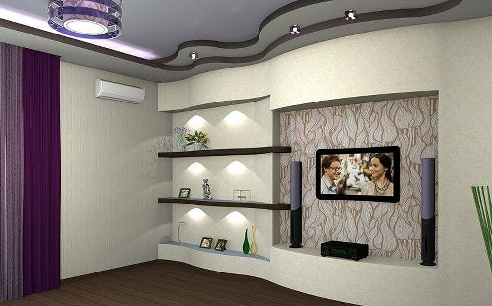 Конструкции из гипсокартона на потолке и стенах в интерьере: фото