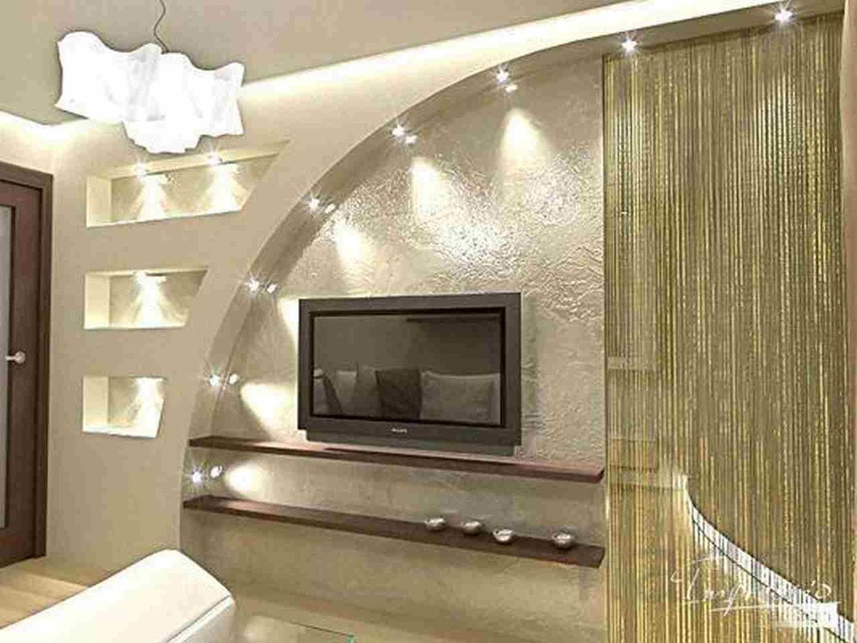 - Ниша для телевизора делает интерьер квартиры современным, в данной нише прекрасно скрываются все провода и телекоммуникации.