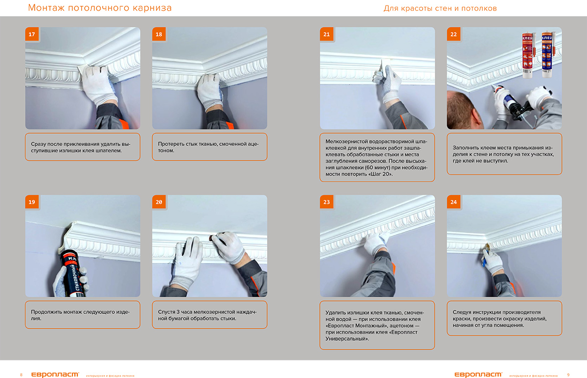 Начальный этап процесса сборки заключается в распаковке и примерке изделия. Каждый карниз запакован в уплотнённый полипропилен термическим методом. Подобную упаковку удобнее вскрывать острым ножом.