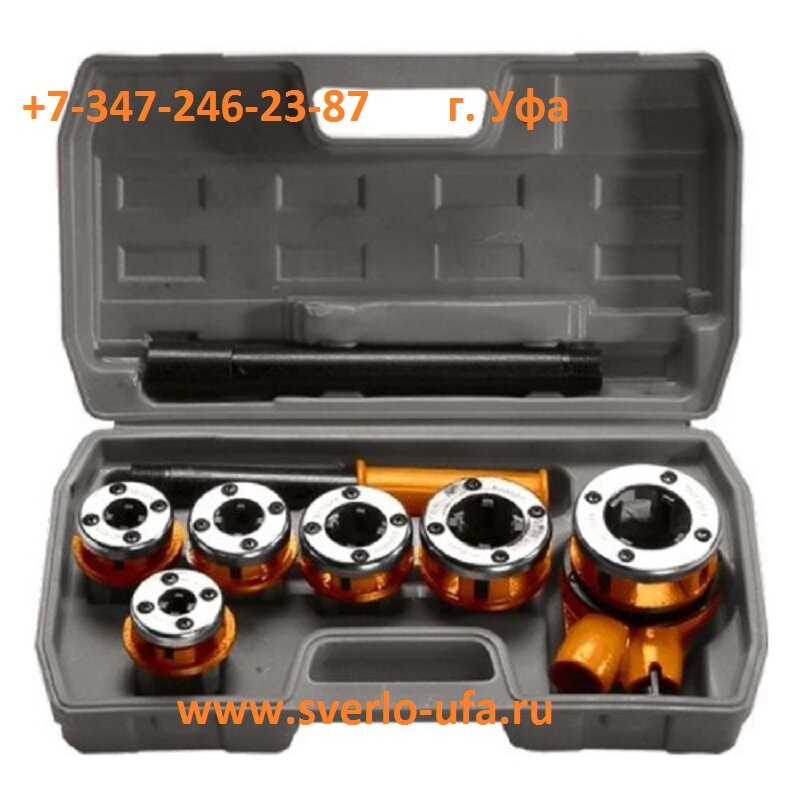 Ящик для инструментов создан для организованного использования на рабочем месте. В комплект входят храповой механизм, штамповочные головки с храповым механизмом и штампы из сплава для нарезания резьбы в кабелепроводе или трубе. Такой набор, содержащий различные инструменты, упрощает использование и хранение, поэтому прослужит долго.