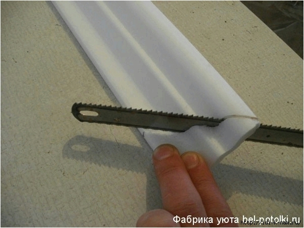 - Вставьте режущий инструмент (ножовку или нож) в необходимый зазор и разрежьте галтель.