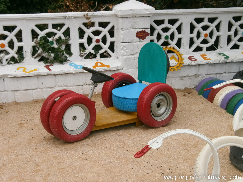 Сделать своими руками машинку из покрышек для детской площадки еще проще, чем из дерева.