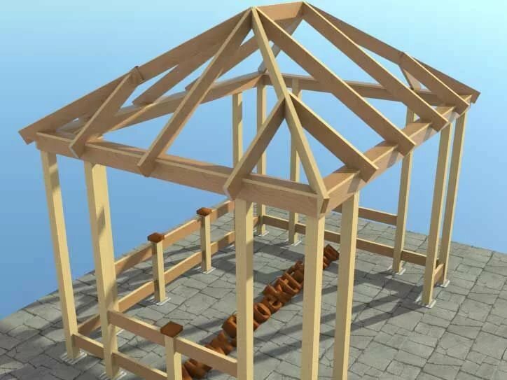 Важный момент: для того чтобы сделать стропильную систему понадобиться дерево хвойной породы, обладающее влажностью в двадцать процентов, и на котором отсутствуют синева и сучки.