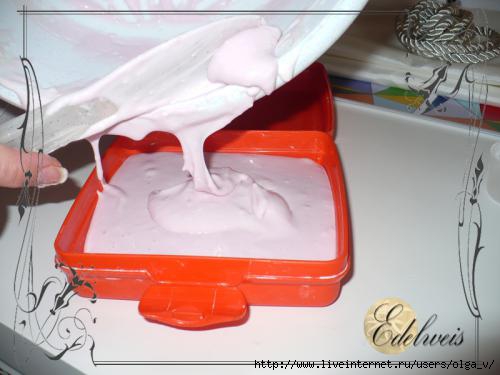 В этом методе силикон помещается в таз или емкость , содержащую смесь моющего средства и воды. Там он становится податливой массой, которой окружена заготовка.Не следует использовать силиконовую массу слишком экономно, иначе форма станет неустойчивой и ломкой.