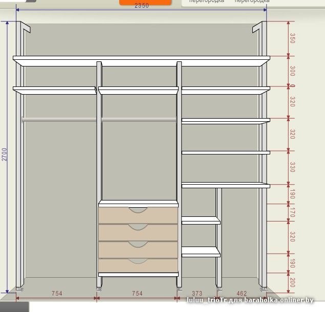 Вверху: различные конфигурации полок и ящиков шкафа.Схема от Intech Kitchen7. Дополните свой гардероб аксессуарами