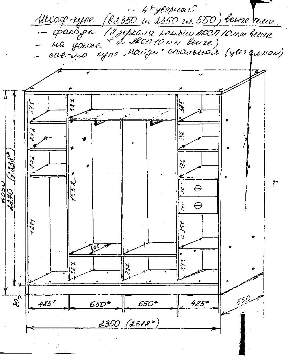 53 чертежа эскиза и макета с размерами Корпусных шкаф-купе