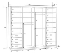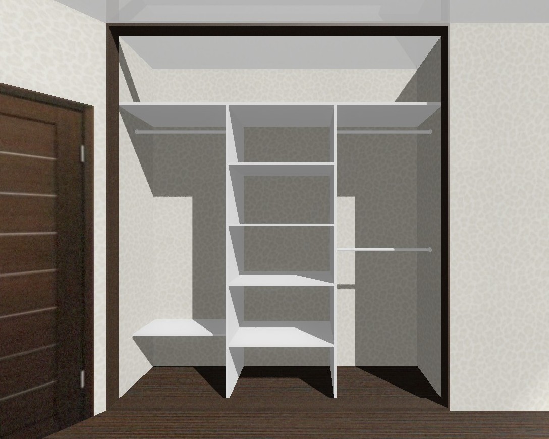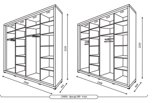 Исходя из стандартной ширины 80 см с каждой стороны и высоты 2,3 м, наиболее распространенными конфигурациями гардероба являются следующие: