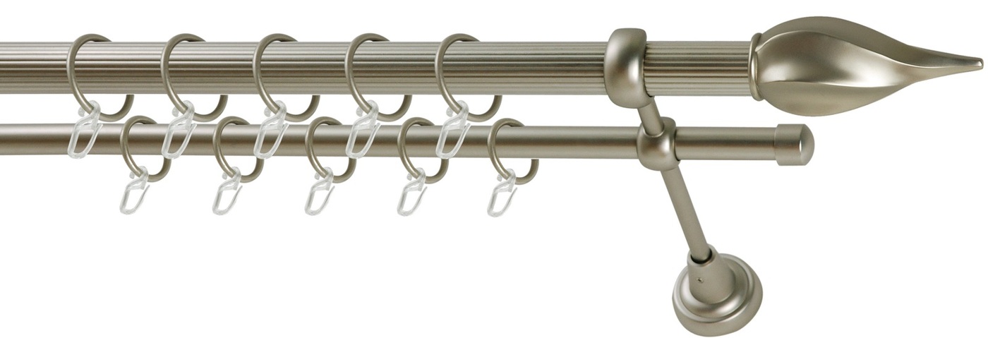 Если сравнивать консоли профильные и штанговые, то первые позволяют ткани беспрепятственно двигаться на протяжении всей длины. Вторые не всегда предоставляют такую возможность, зато могут иметь очень привлекательный вид. Это металлические трубки и пруты сложной формы с гравировками и рельефными поверхностями. Дополняют композицию фигурные наконечники.