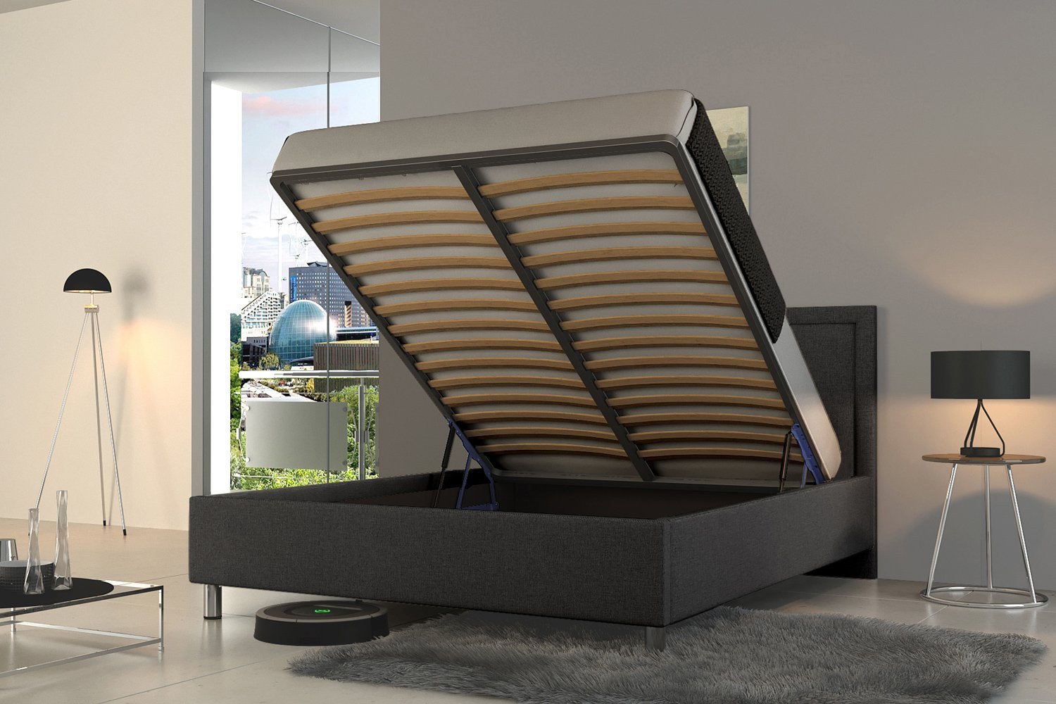 Обставляя мебелью любое, особенно ограниченное пространство, каждый из нас старается максимально полно и комфортно его использовать. Кровать с микролифтом в этом плане, бесспорно, является идеальным решением. Все, что использовалось для безмятежного сна ночью, можно меньше чем за минуту убрать в кроватный короб, а перед сном так же быстро достать. По сравнению с кроватями с выдвижными ящиками такая система не зависит от пространства вокруг кровати, часто сильно ограниченного небольшими размерами спален.