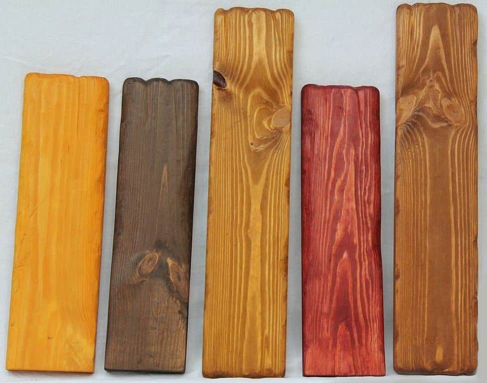 Чтобы выбрать наиболее оптимальный вариант часто делают несколько пробных выкрасов. Для этого несколько дощечек покрывают разными морилками. После чего делают выбор.