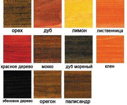 Примеры расцветок морилки для дерева