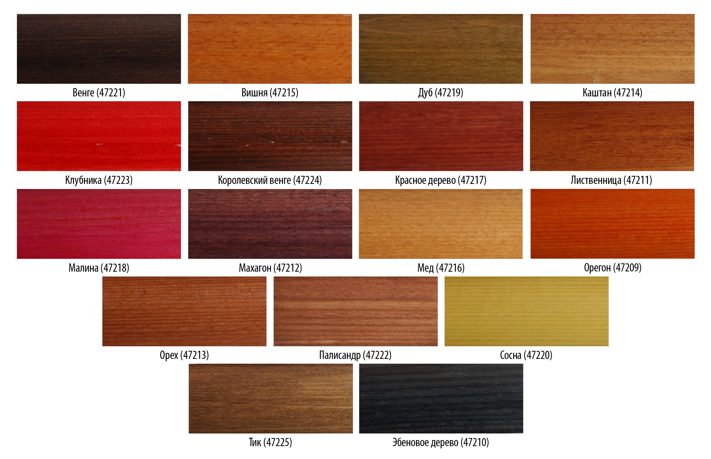 Каждый цвет морилки по международной классификации имеет свой шифр. И название, соответствующее породе древесины, цвет которой имитирует морилка. Например, морилка «Красное дерево», «Дуб» или «Слива». Но выбирать пропитку только по названию или картинке на этикетке неразумно. Можно получить непредсказуемый результат. На это есть причины: