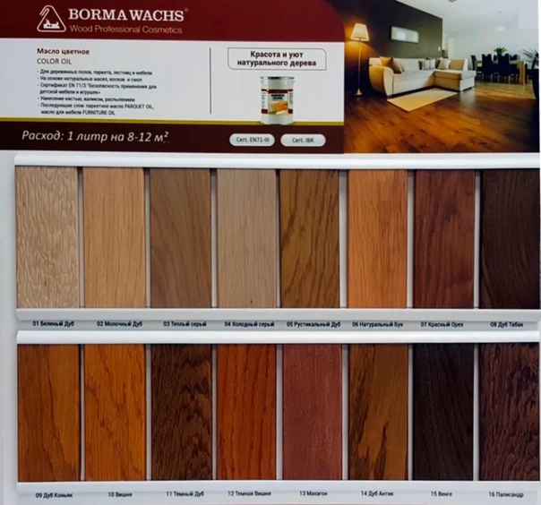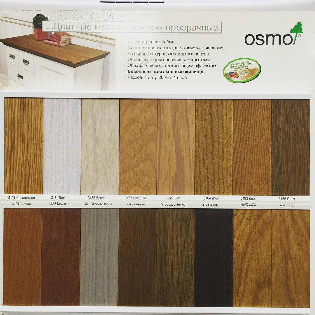 Во многих магазинах выставляют на обозрение плашки-образцы, выкрашенные разными морилками. Образцы более точно передадут реальный цвет морилки, чем картинка на этикетке.