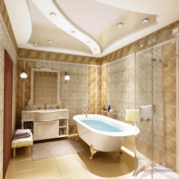 Некоторые владельцы видят для себя идеальным вариантом отделку потолка в ванной плиткой. В качестве последней может использоваться: