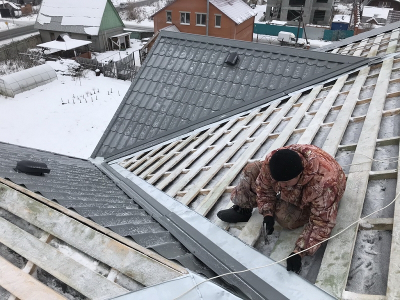 Монтаж кровельного покрытия на кровлю дома
