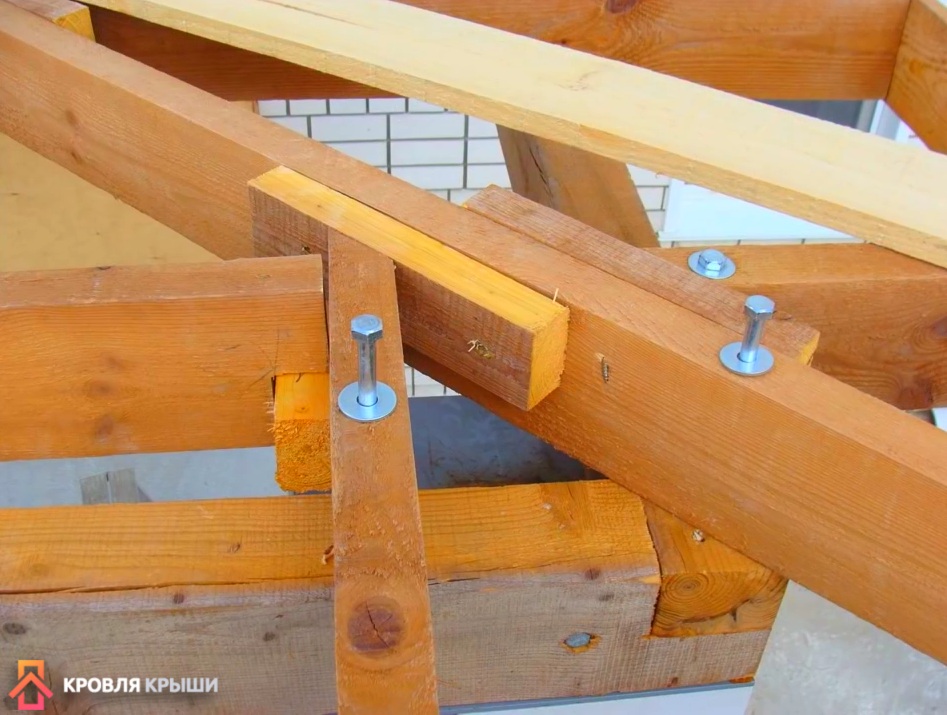 Такие элементы конструкции лучше всего делать из бруса такого же размера, что и балки перекрытия. Подобная мера бывает необходима, если пролет стропила достигает значительной величины, и требуются элементы его усиления, то есть дополнительные точки опоры для распределения нагрузки.