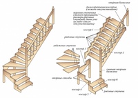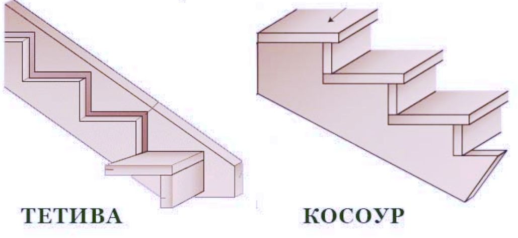 По конструктивному исполнению лестницы разделяются следующим образом. Основные (как правило, маршевые лестницы) могут быть на косоурах или с тетивами. Если балки, на которые опираются ступени марша, расположены под ними, то такие балки называют косоурами, если сбоку ? то тетивами. Косоуры и тетивы опираются на балки, поддерживающие лестничные площадки.