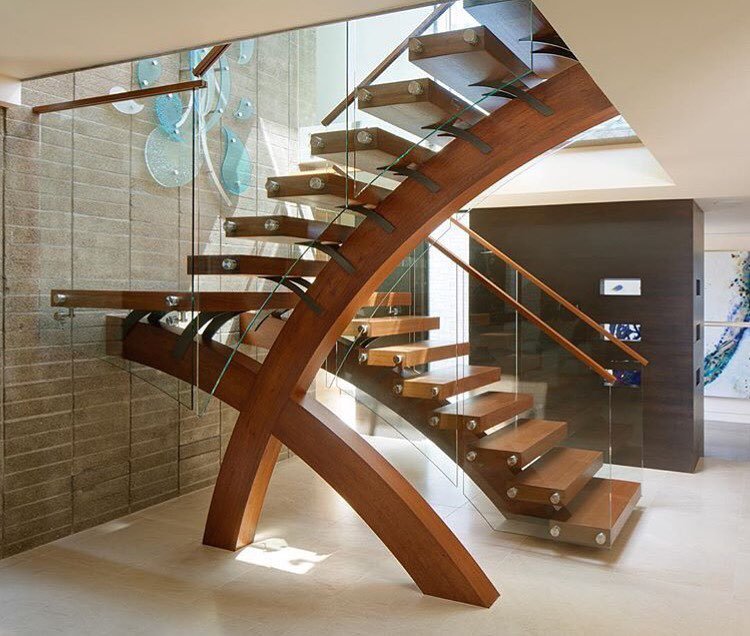 Некоторые из них поставляются в виде полностью предварительно собранных единиц. А.Дж. Лестница, например, строит лестницы из твердых пород дерева высокого качества из нескольких различных пород древесины и доставляет их на место работы на грузовике компании с водителем, прошедшим заводскую подготовку, который контролирует установку, что занимает около часа.Изогнутые стены строятся плотником после установки лестницы.