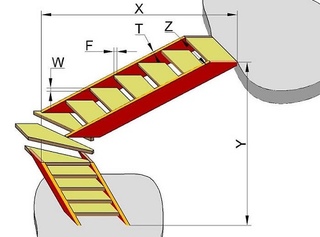 Лестница может быть прямой с площадкой и поворотом, а может быть изогнутой.Непрерывный ряд шагов между посадками называется полетом.