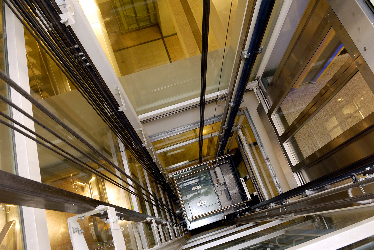 Даже один такой трос способен удержать её в шахте, поэтому обрыв сразу всех тросов практически исключен. Всего для предотвращения падения кабины в шахту, предусмотрены около 30 электронных и 5 механических защит.