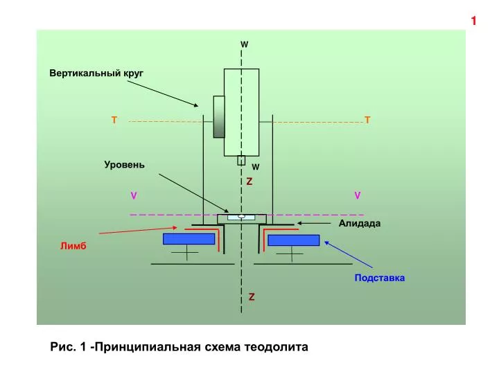 - Важна абсолютная вертикальность оси алидады и ее перпендикулярность цилиндрическому уровню.