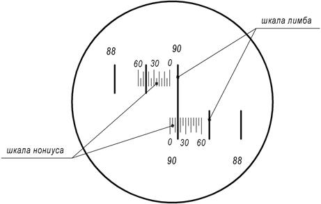 Отсчитывание углов по лимбу и алидаде производится с помощью специального оптического отсчетного устройства – шкалового микроскопа.