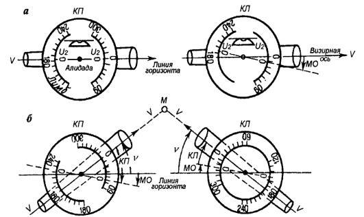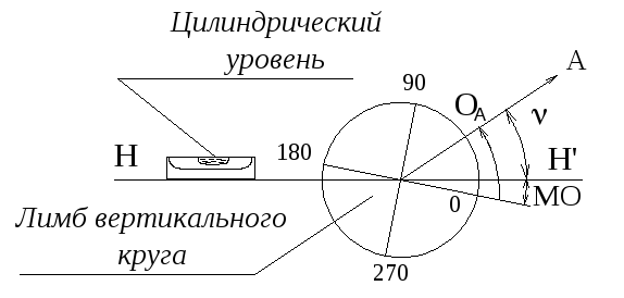 Отсчет по лимбу вертикального круга при горизонтальном положении визирной оси называется местом нуля вертикального круга и обозначается МО. В процессе измерения вертикальных углов этот угол должен оставаться постоянным.