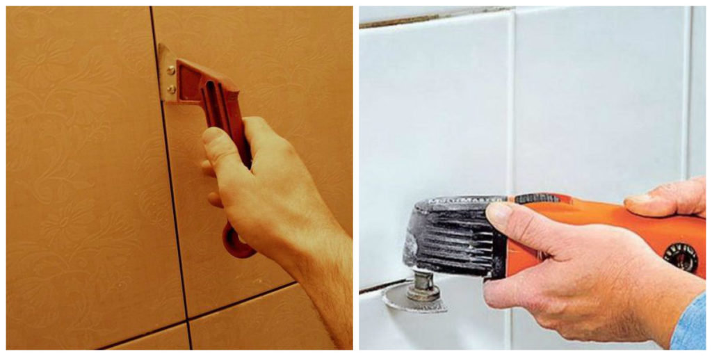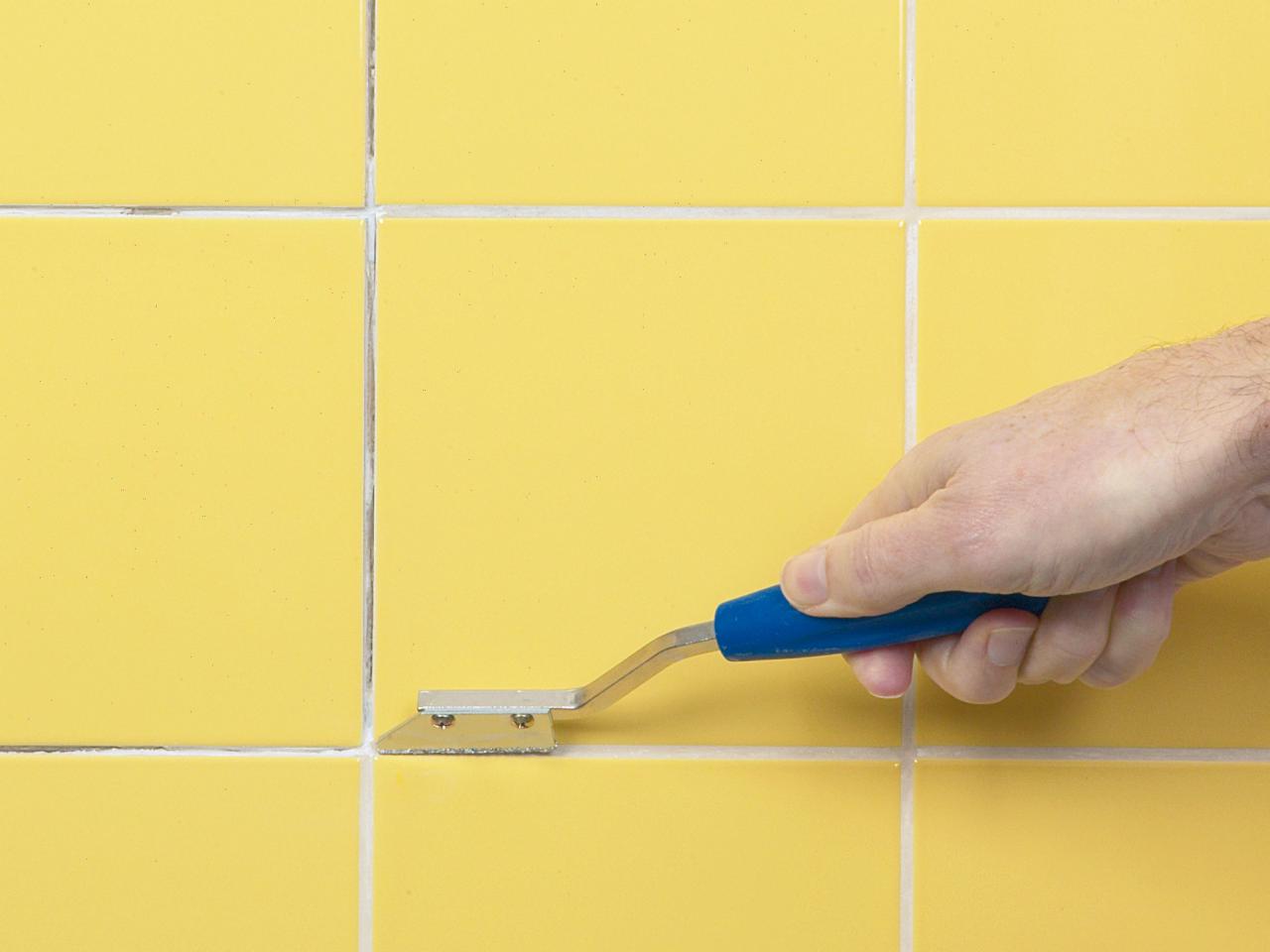 Швы необходимо очистить от остатков клея хотя бы на 2/3 глубины. Эту операцию лучше выполнять сложенной вдвое грубой наждачной бумагой. Нельзя чистить металлическими предметами. Можно сколоть угол плитки, особенно с глазурью.