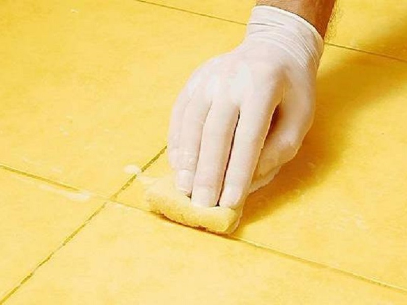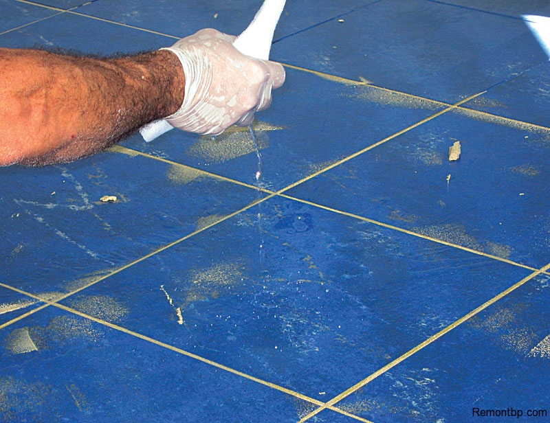 - Размывание швов теркой и окончательная очистка плитки водой с помощью паралона.
