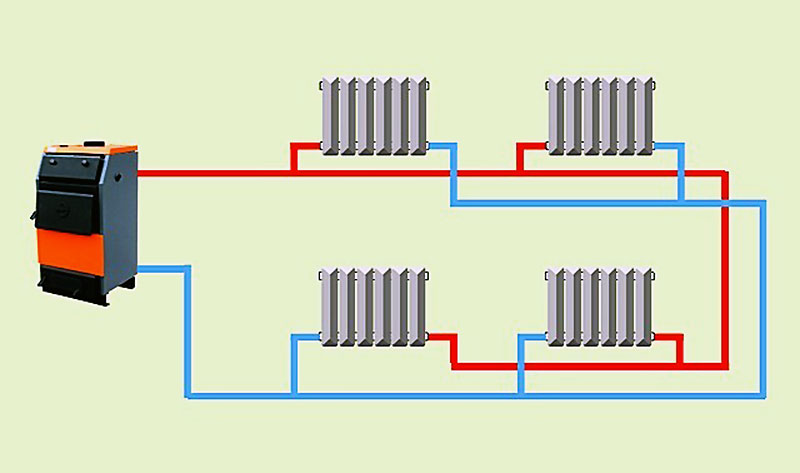 В таком случае отопительные приборы подключены последовательно один за другим. Такая схема великолепно подойдет для одноэтажного дома.