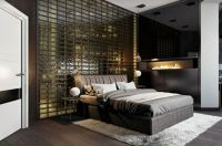 Зонирование спальни с помощью перегородки из стеклоблоков