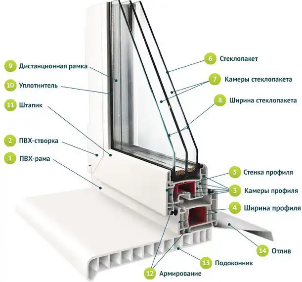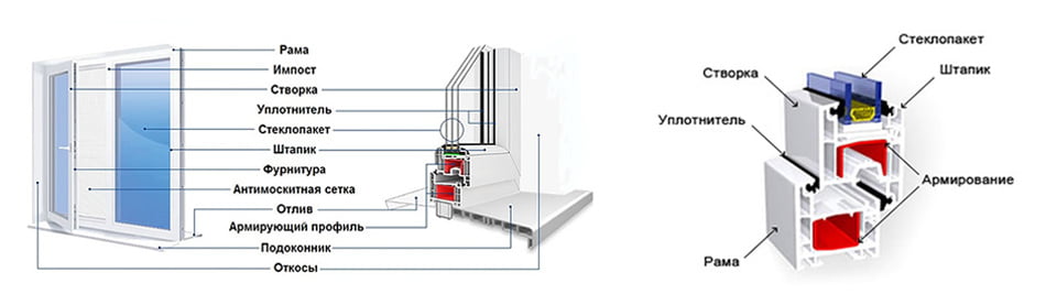 Технология и устройство окна ПВХ: основные элементы конструкций.