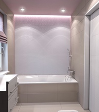Выбор конструкции потолка, должен определяться техническими условиями, но в еще большей мере соображениями дизайна ванной комнаты. Самое, кажется, категорическое условие — низкая высота помещения, которая ограничивает высоту подвесных конструкций.