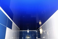 Натяжной потолок могут смонтировать лишь специалисты со специальным оборудованием в наличии – полотно требует разогрева перед монтажом. Данный вид потолка лучше всего противостоит высокой влажности в ванной комнате, и более того, с таким потолком не страшно затопление соседями.