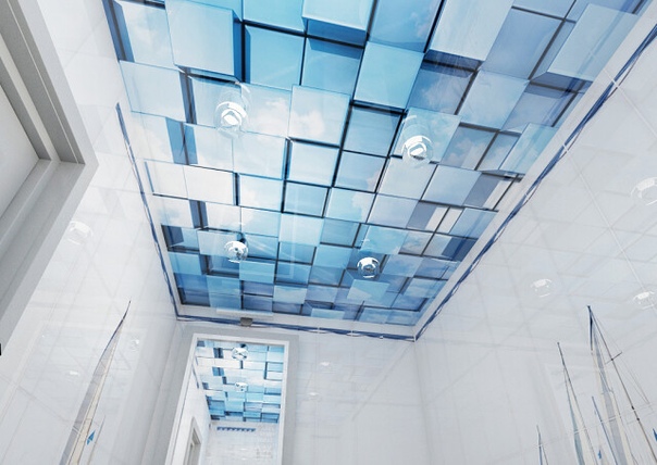 Панели из переработанного ПВХ придают потолку уникальный вид
